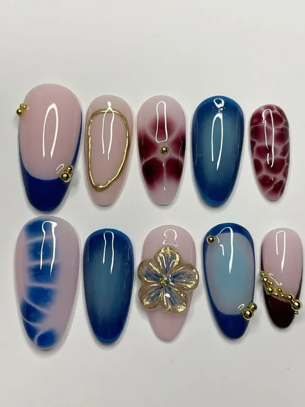 Blue -maroon summer nails