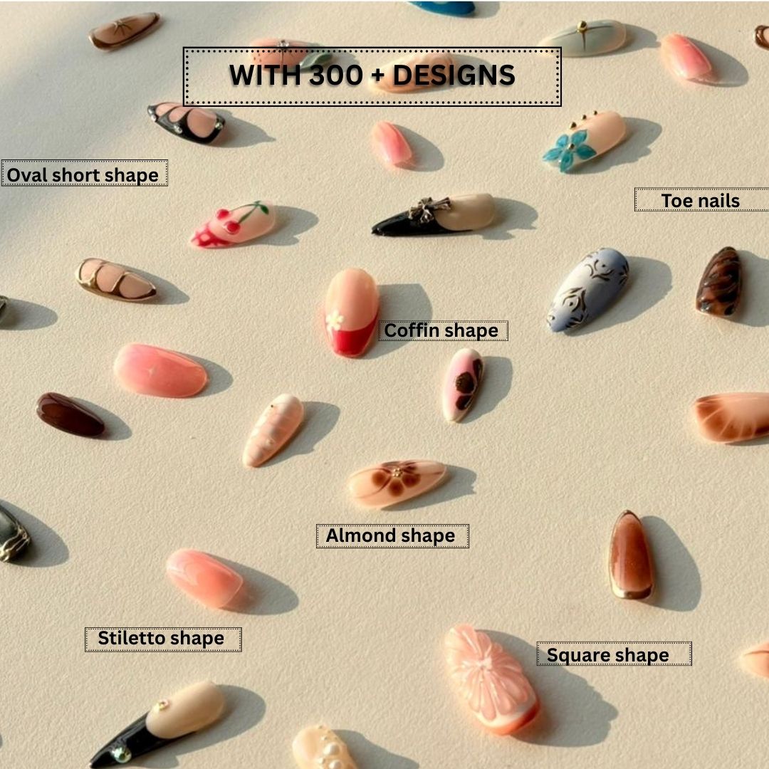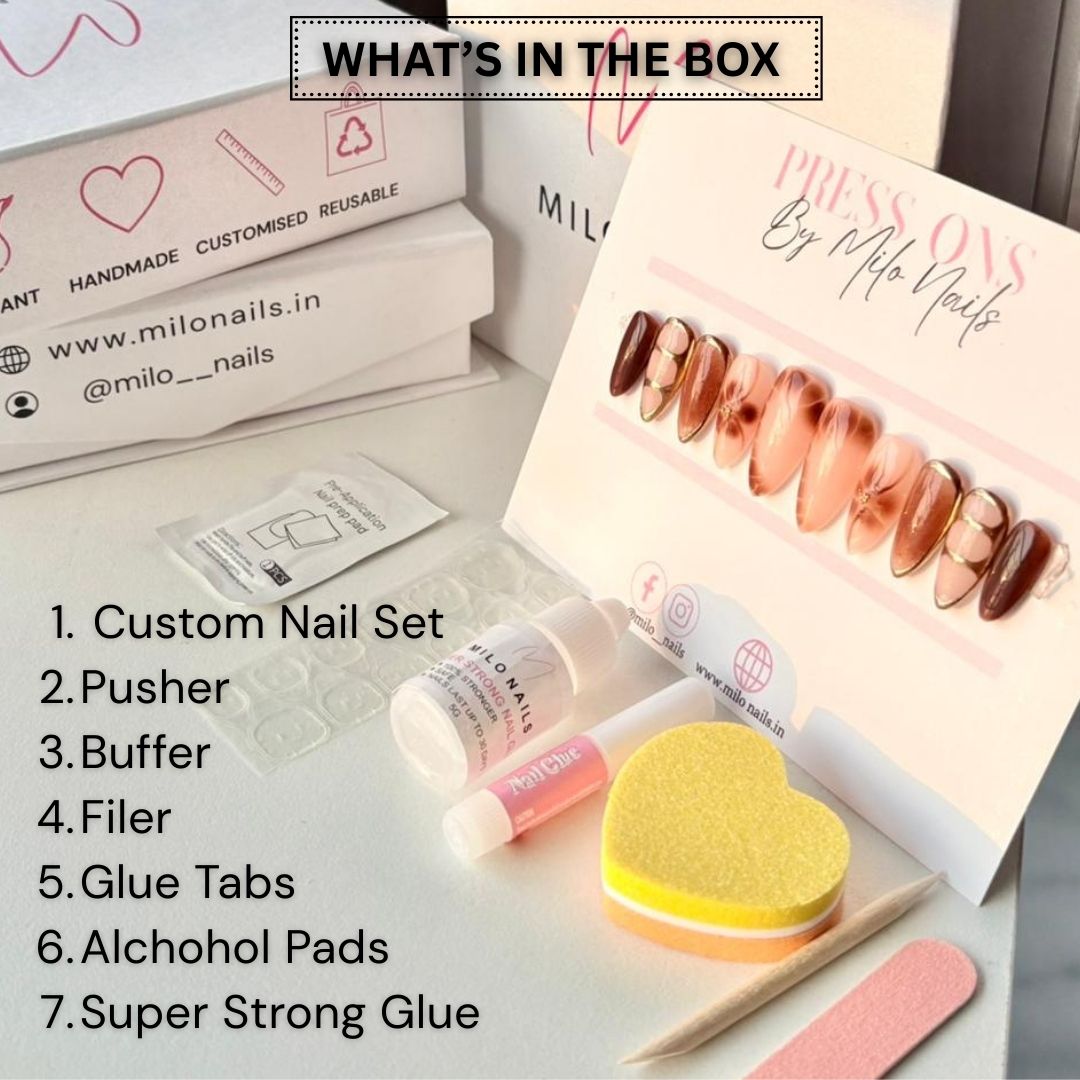 Our press-on nails are made from premium, salon-grade gel material, carefully handcrafted for a natural look and comfortable wear. They’re non-toxic, lightweight, and safe for your natural nails.