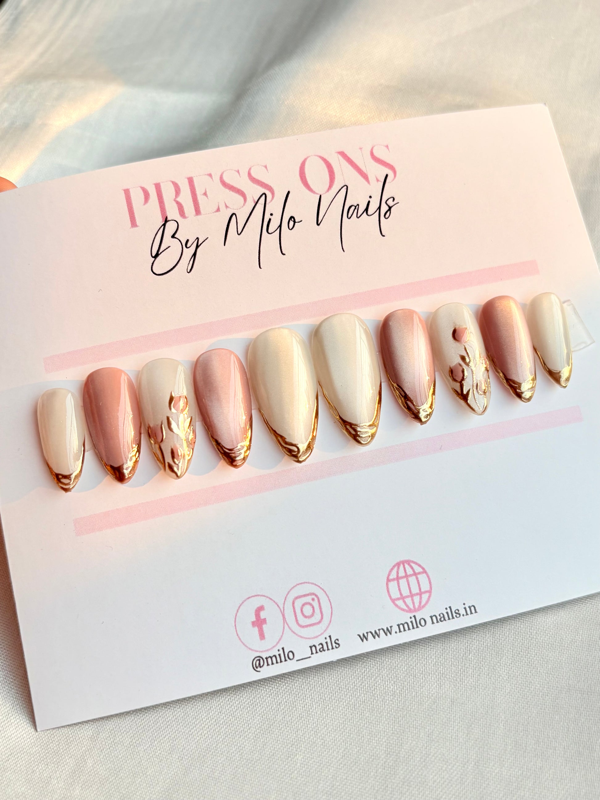 Our press-on nails are made from premium, salon-grade gel material, carefully handcrafted for a natural look and comfortable wear. They’re non-toxic, lightweight, and safe for your natural nails.