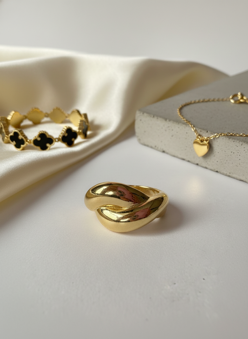 Golden croissant cross Adjustable Ring – 18K Gold-Plated Feminine Charm
