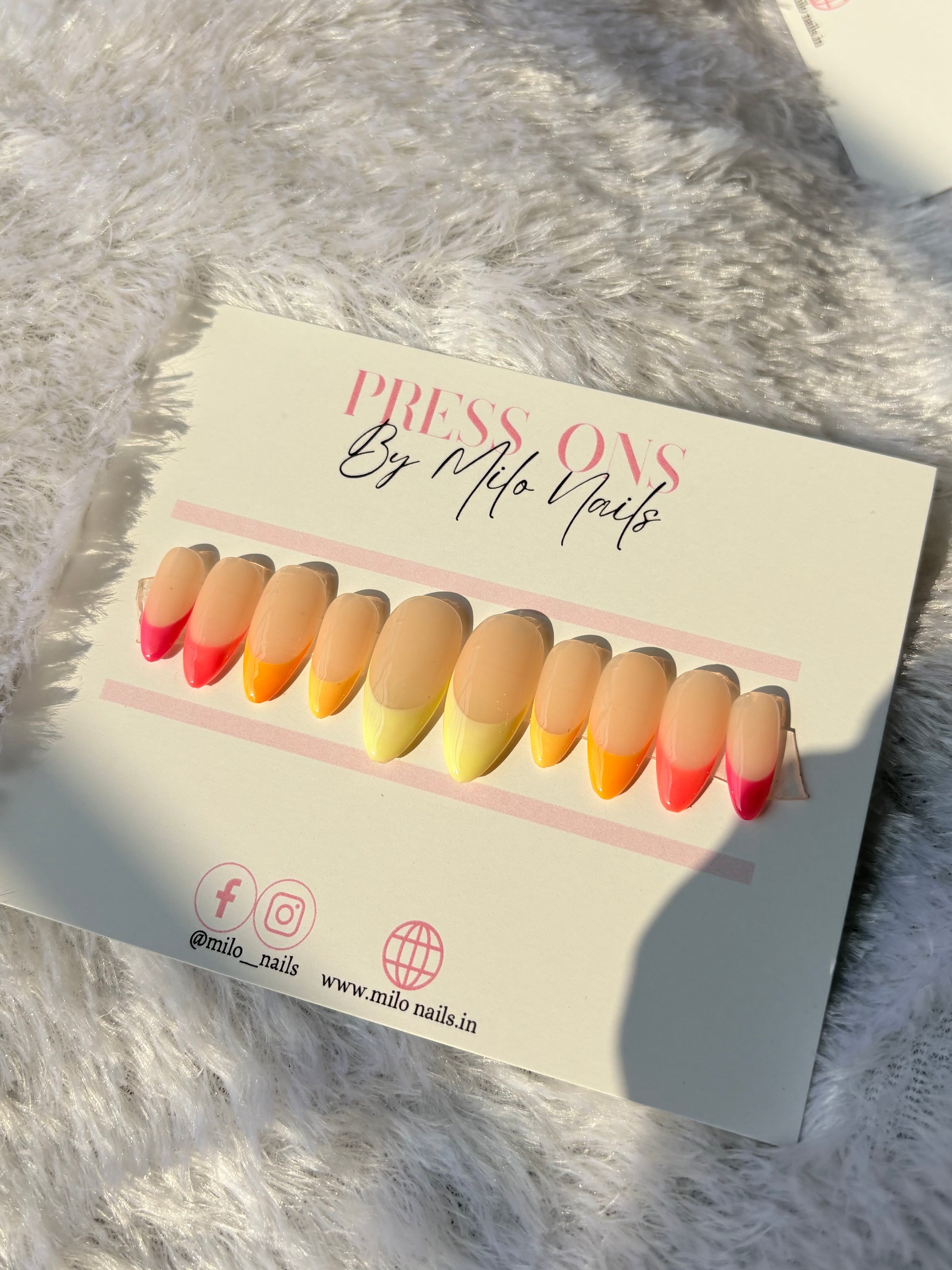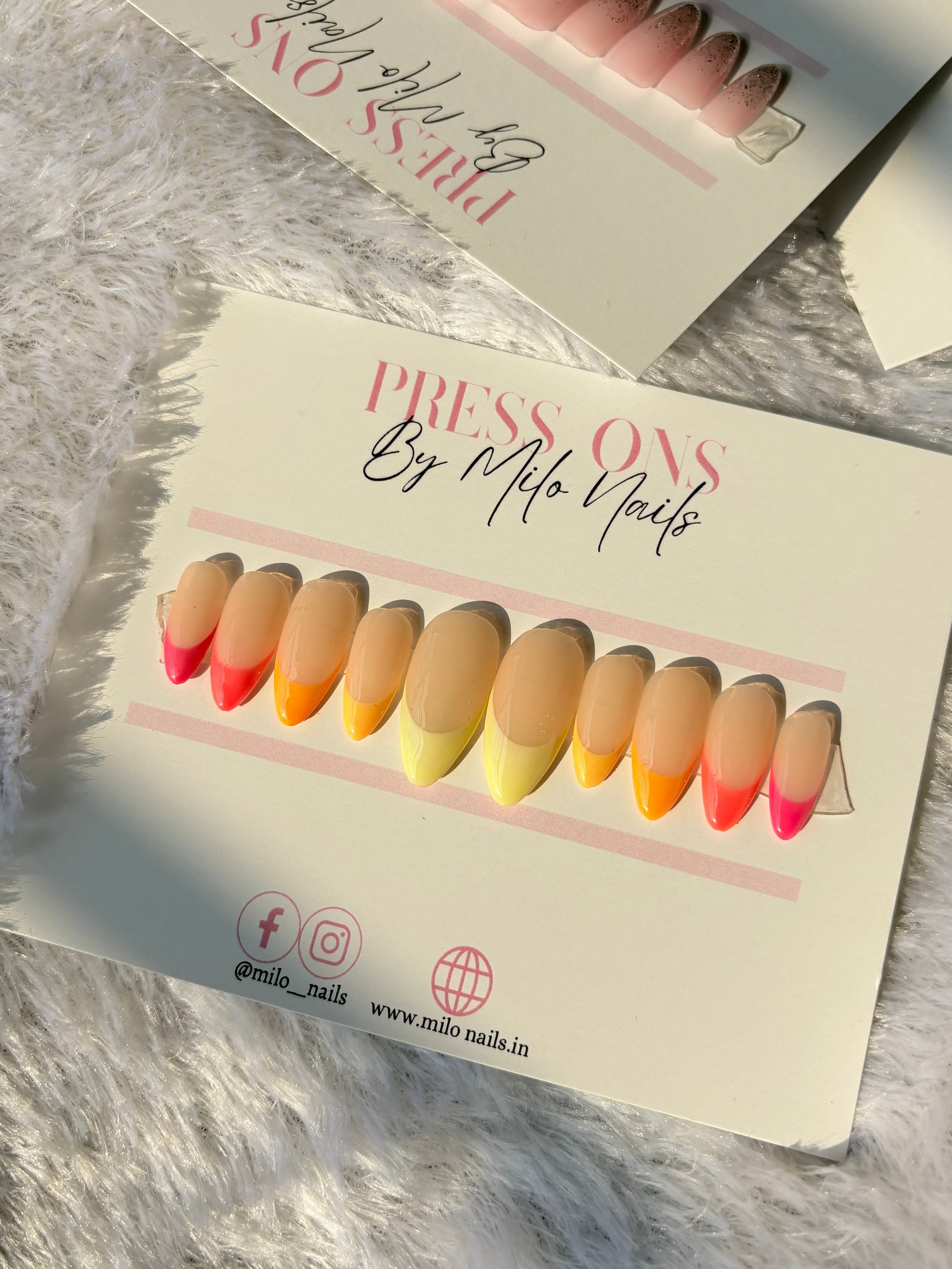 Our press-on nails are made from premium, salon-grade gel material, carefully handcrafted for a natural look and comfortable wear. They’re non-toxic, lightweight, and safe for your natural nails.