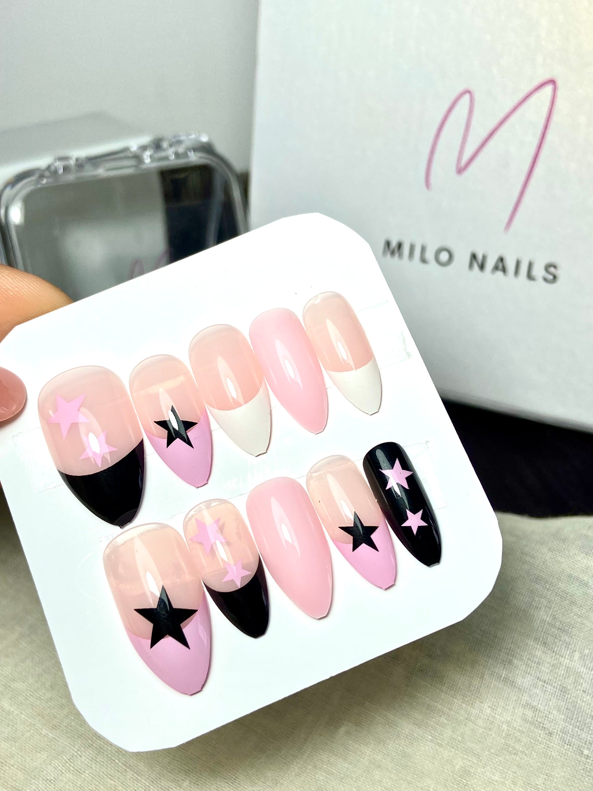 Pink-black star nails (24pcs)
