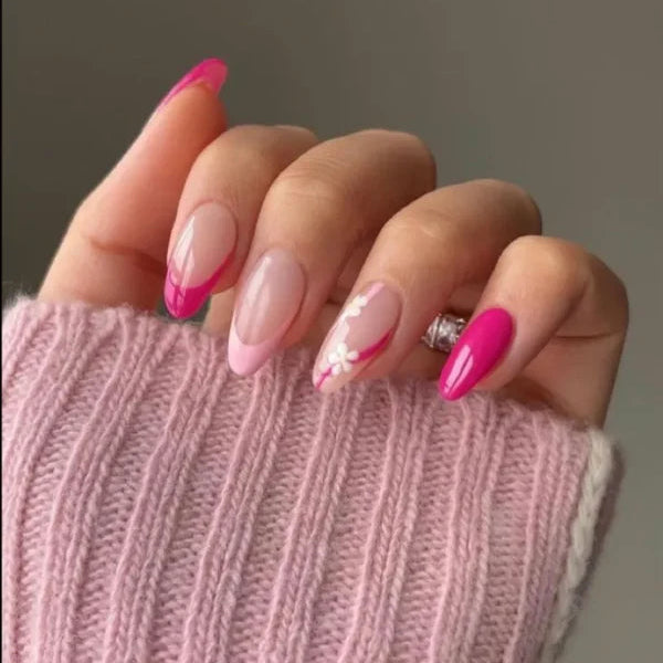 Pink tips and flower press ons